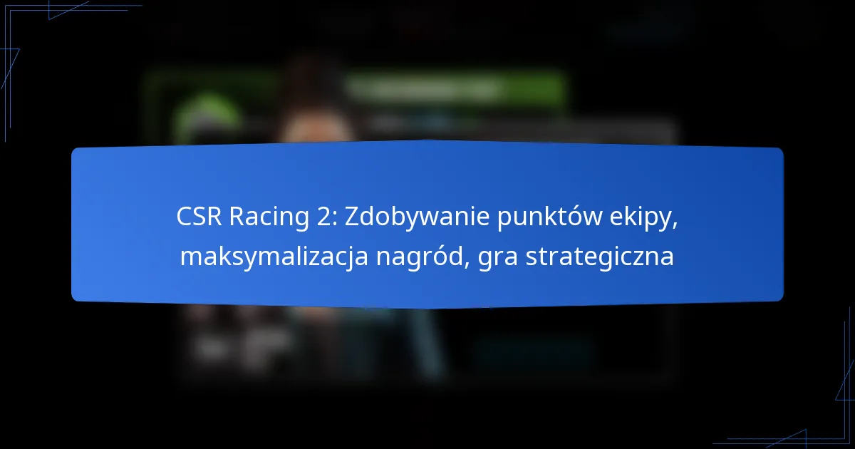 CSR Racing 2: Zdobywanie punktów ekipy, maksymalizacja nagród, gra strategiczna